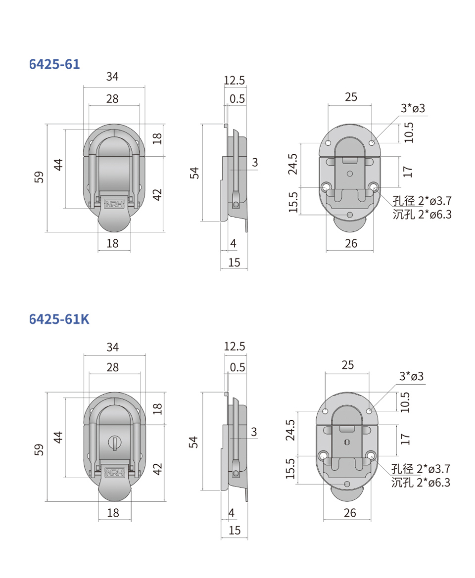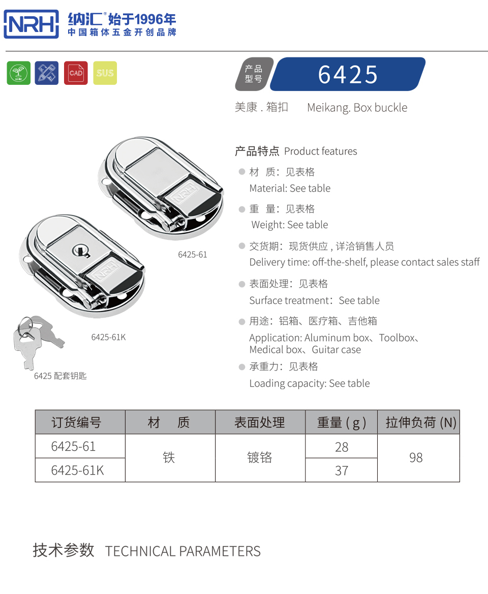 纳汇/NRH 工具箱箱扣锁 6425-61K 品 牌:纳汇/NRH